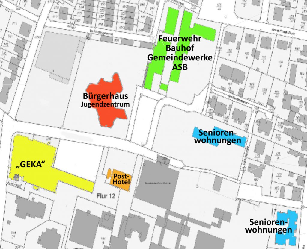 Hierbei ist angestrebt für das Gebiet im Bereich Bürgerhaus/Seniorenwohnanlagen/Feuerwehrgerätehaus/Festplatz städteplanerische Vorschläge zu erhalten und diese mit den Bürgern zu diskutieren. Der daraus resultierende Gewinner des Wettbewerbes wird mit der weiteren Ausarbeitung des Vorschlages beauftragt werden. Zudem können damit zielgerichtet Investoren angesprochen werden. Klärung wird es dann auch für die gemeindeeigenen Immobilien Bürgerhaus, Bauhof und Feuerwehrgerätehaus geben, bei denen ein zum Teil erheblicher Sanierungsbedarf besteht. Die Seniorenwohnanlagen 1 und 2 können ungeachtet dessen an einen geeigneten Betreiber veräußert werden, da dies bereits mit dem Haushaltssicherungskonzept 2011 von der damaligen Mehrheit beschlossen worden war.
